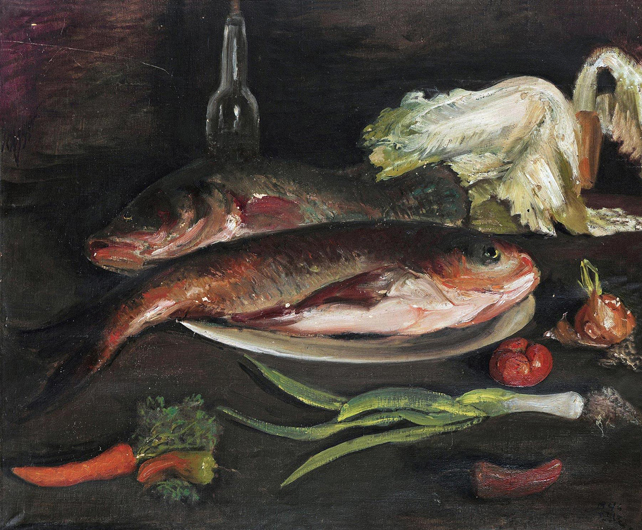 要论画鱼,只怕再没有比李铁夫画得更传神更活的了,因为他一生都在画鱼。力之所致,技也达极致。此幅《静物》(布上油画 82×97cm 1946年)画得实在太好了,一幅即可代表他的精湛水准。