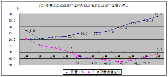(一)民营工业增速持续上升,外商及港澳台企业不景