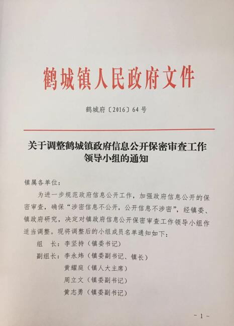 2016年,鹤城镇在市委、市政府的正确领导下,认真贯彻执行《中华人民共和国政府信息公开条例》和市上级相关文件的规定,全面推进鹤城政府信息公开工作,进一步完善和创新鹤城镇政务公开的方式和渠道,推行依法行政、优质行政、廉洁行政。