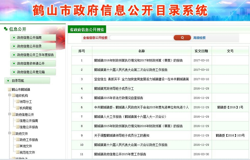 2016年我镇通过各种信息公开形式主动公开的信息共482条,其中创文动态36条、新闻信息225条,计生专栏20条、平安鹤城20期,政府工作报告类2条,统计信息17条,公告公示135条,政策法规5条,消防专栏信息22条。