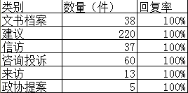 2015年,我局对内对外共接待文书档案查阅38人次。同时,我局高度重视群众信访回复办理工作,配备专职办理人员,在第一时间内及时答复,回复率达到100%。2015年,我局通过网络问政平台、信访电话、12345政府服务热线等渠道共接收市民有关教育方面的咨询、投诉、建议共220多件,已全部办结;接到省教育厅、江门市教育局、皇家国际官网 信访局等部门共转来信访件37件,已全部办结;接到社会各界群众来电有关教育问题的咨询、投诉近60多个,接待群众来访13批次,全部予以回复,群众满意度高。共办理市政协提案5件,及时回复政协委员,满意度达100%。