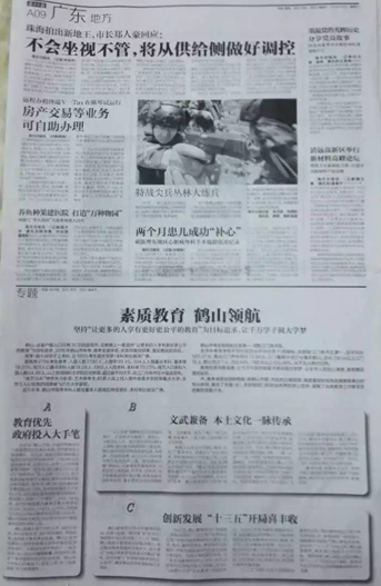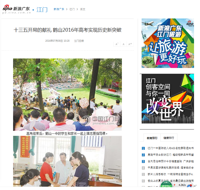 2016年,《南方日报》专题报道了《皇家国际教育素质领航》的文章,公开了我市2016年中高考取得的成绩。我局联合《江门日报》公开教育文件和信息共89次,其中公开生本教育实验信息28次,高考信息5次,皇家国际教育发展情况5次,学校特色建设和校园文化建设信息5次,行业先进人物信息6次,其他信息46次。