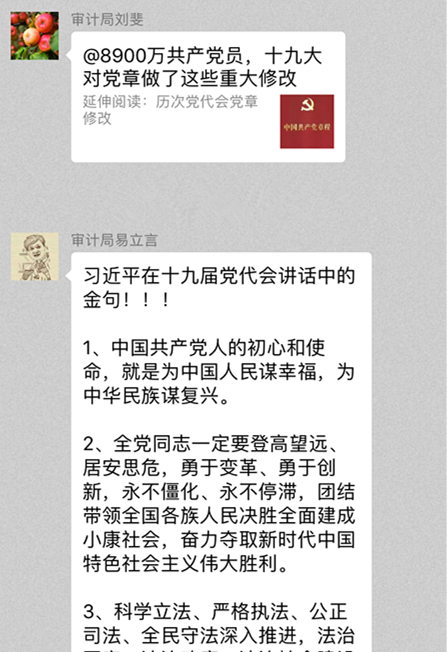 △微信群、微信公众号转发推送十九大报告及解读