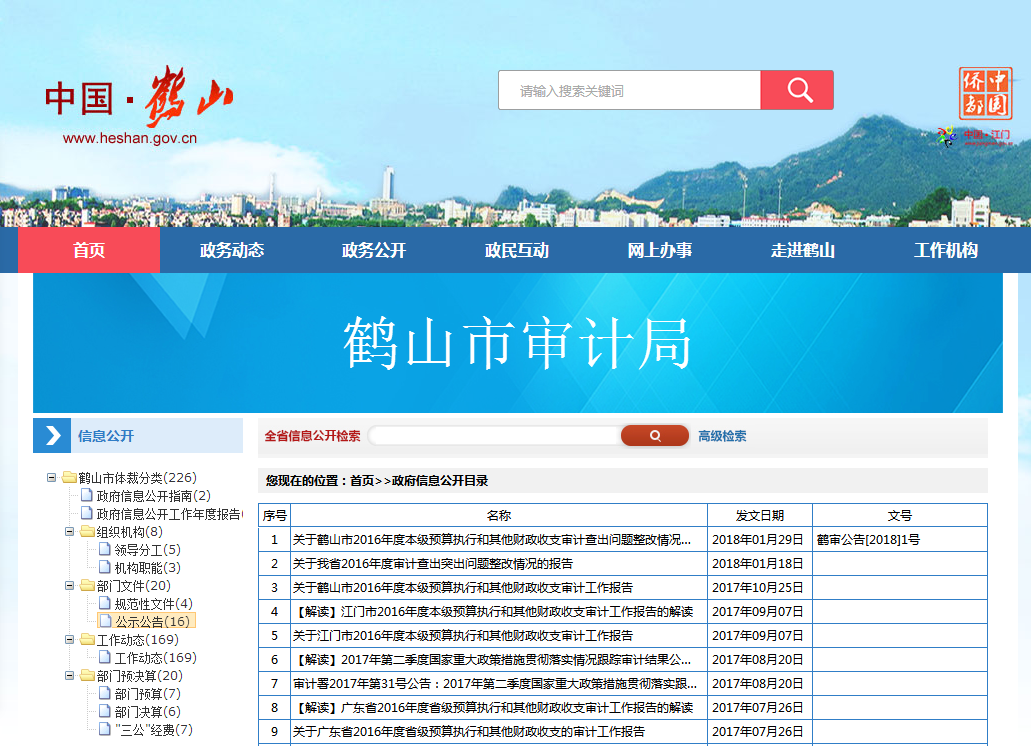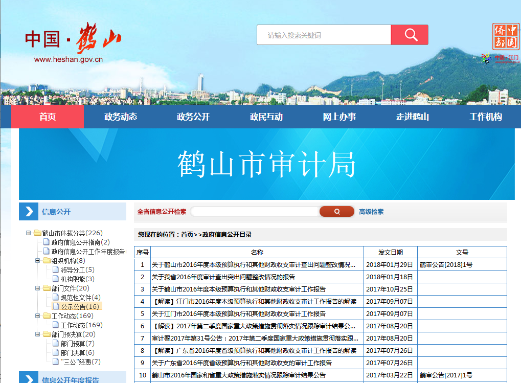 审计局-部门文件-公示公告栏目分别向社会公开。