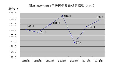 全年居民消费价格总指数为105.5,上涨5.5%。 分类别看,食品类上涨12.6%,烟酒及用品类上涨3.6%,衣着类上涨0.2%,家庭设备用品及维修服务类下降0.4%,医疗保健和个人用品类上涨6.3%,交通和通信类上涨1.3%, 娱乐教育文化用品及服务类上涨0.6%,居住类上涨1.7%。