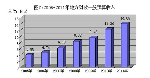2011年全市地方财政一般预算收入14.08亿元,增长21.3%。其中:增值税增长9.7%,营业税增长21.0%,企业所得税增长40.4%,个人所得税增长18.0%。全市镇(街)财政收入8.04亿元,增长20.7%,占全市财政一般预算收入的比重为57.1%。全部镇(街)财政收入超千万元,且增幅超过双位数。雅瑶镇财政收入1.01亿元,成为继沙坪街道后第二个财政收入超亿元的镇,增长28.5%。国税收入17.45亿元,增长14.0%,地税收入11.60亿元,增长26.8%。