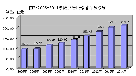 全市金融机构人民币各项存款余额307.42亿元,比年初增长6.5%,其中:城乡居民储蓄存款余额209.70亿元,比年初增长5.1%。金融机构贷款余额205.39亿元,比年初增长16.6%。