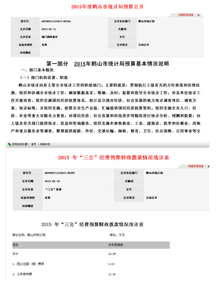 (二)主动公开财政资金信息。除继续公开部门预算信息外,2015年还主动公开部门决算信息、“三公”经费预算信息和“三公”经费支出信息。