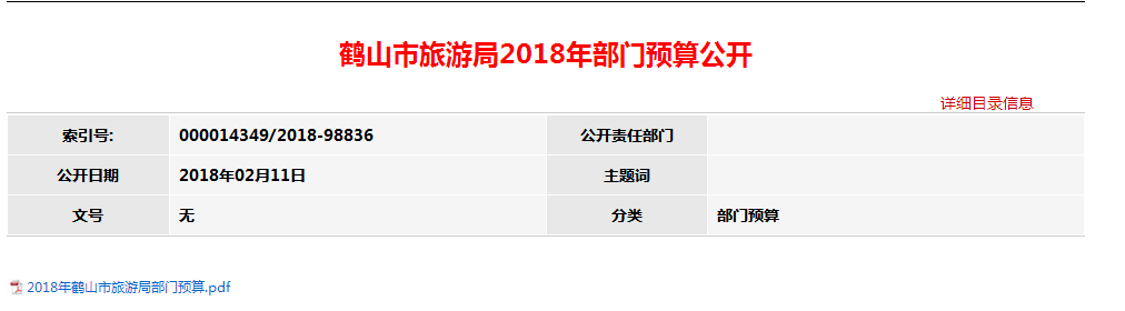 (五)继续推进财政资金信息公开。根据市政府和市财政局的统一规定,我局于2018年2月、10月公开了《皇家国际官网 旅游局2018年部门预算公开》和《2017年皇家国际官网 旅游局部门决算公开报告》,并接受市民监督。