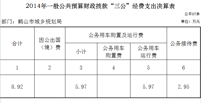 城乡规划局用财政拨款开支的出国(境)经费、车辆购置及运行费、公务接待费(简称“三公”经费)支出合计8.92万元。
