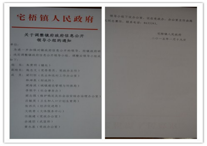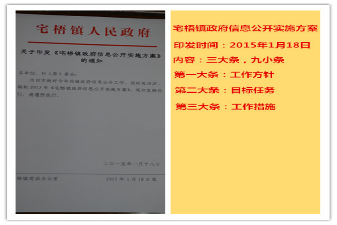 2、建立了宅梧镇政府信息公开制度,进一步明确和完善了政府信息公开工作的工作原则和流程。
