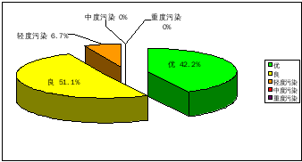 2019年第一季度皇家国际官网 区空气质量达标天数比例平均为93.3%,其中优占42.2%(38天),良占51.1%(46天),轻度污染占6.7%(6天),无中度污染和重度污染天数。