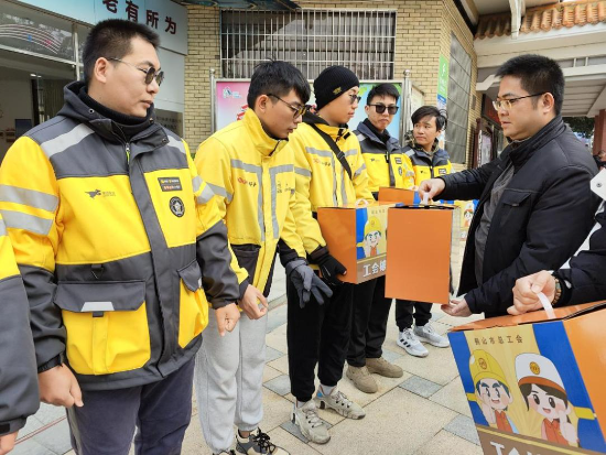 2024年1月25日,沙坪街道桂林社区在党群服务中心门前广场开展“工”送温暖,心“新”相连慰问活动。