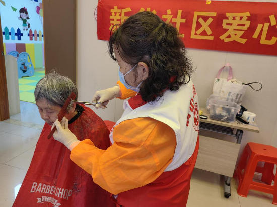 2024年3月11日,沙坪街道新华社区组织党员义工在党群服务中心一楼大厅恒常开展爱心义剪活动。