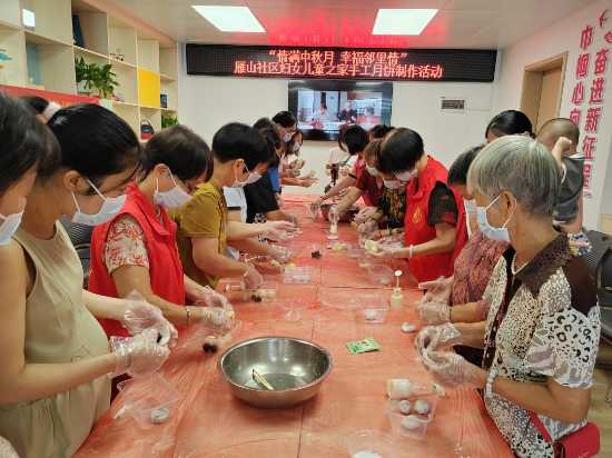 2024年9月14日,雁山社区组织辖区群众在党群服务中心妇女儿童之家开展“情满中秋月 幸福邻里情”手工月饼制作活动。