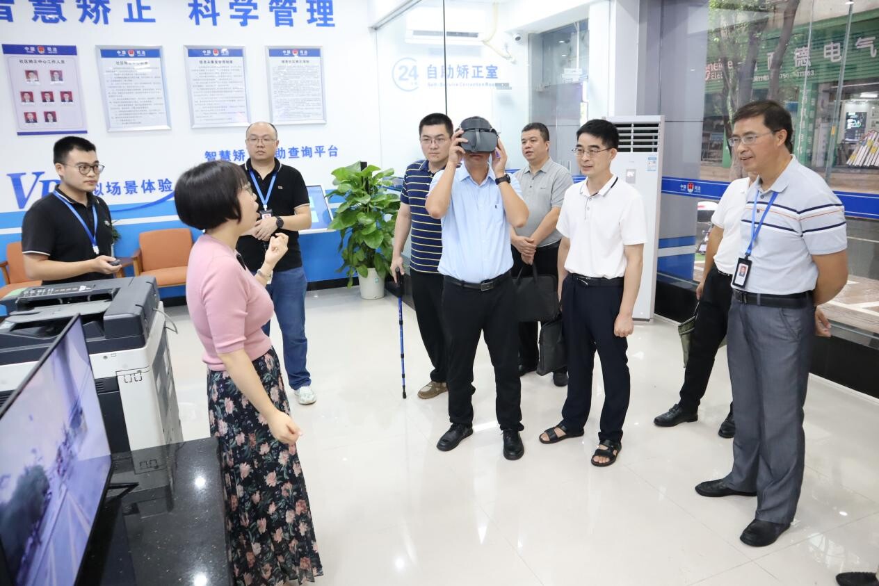 △调研组在皇家国际官网 社区矫正中心体验VR情景模拟设备