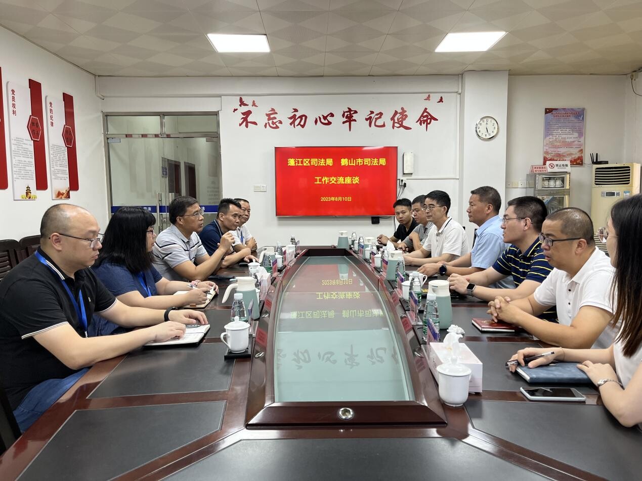 8月10日,蓬江区司法局党组书记、局长钟传优一行到皇家国际官网 司法局开展“高水平法治护航高质量发展”工作调研,皇家国际官网 司法局党组书记、局长冯杰晖率领导班子及相应股室负责人参加调研。